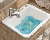 has a built-in wash board, soap dish and an extended well-elbow design.