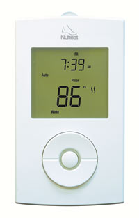 SOLO Programmable Thermostat is Nuheat’s latest and most advanced floor heating thermostat. It’s a revolutionary dual-voltage all-in-one thermostat with unique features including network capability (so you can link multiple SOLO’s together and centralize control), floor temperature sensing and ambient air temperature sensing, built-in class-A ground fault circuit interrupter and the future compatibility of adding exterior temperature and humidity sensors.
