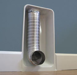 Dryer box provides a recessed cavity in the back wall with all the required connections for the venting and gas line to be neatly tucked into the hollow space. This means the dryer can be pushed all the way back, flush with the washer, without compromising the venting.