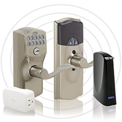 LiNK, uses z-wave technology to provide secure remote access of the lock from your computer, PDA or cell phone. Programmable temporary pass codes provide access to a service tech or even allow you to receive a text message when a family member enters their code. Because Schlage uses the z-wave chip, customers have the ability to pair this product with any other z-wave enabled products and can start building their ultimate wireless home control system. Z-wave is a communication platform that is being adopted by companies so that their products can communicate with other manufacturers’ products to provide a simple means of creating an automated home.