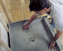 Redi Pan builds a prefabricated shower pan that is rigid, one piece and pre-sloped. What makes this pan different is that you can tile directly onto it. This allows you to create that custom tiled look with a perfect consistent slope that is leak proof and mould free.