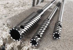 The Bosch Straight shank rebar cutter is a drill bit that will cut through rebar up to 36 times faster and last twice as long as other rebar cutters. It has a unique flute geometry that employs a steep spiral design which quickly removes debris. A relief hole is incorporated into the cutting surface to dissipate heat and facilitate slug removal. Users simply drill with a carbide bit until making contact with rebar. They then use the rebar cutter in rotary mode to cut through the rebar until contacting concrete again. Once rebar is cut, just switch back to the carbide bit to complete the hole.