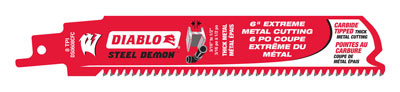 In the construction sector, Freud had introduced the Diablo brand to distinguish site tough blades from their fine-tuned woodshop and furniture making blades. So with the focus given to them by Bosch, they have made the leap of putting carbide teeth onto metal cutting recip blades. Aside from all the questions of the composition of the carbide and the shape of the teeth, the action of a reciprocal saw has the pressure on the tooth going in the wrong direction half the time-essentially trying to kick the carbide off the blade. Take a very close look at the Diablo recip blades and you will see that the tooth is actually socketed into the blade, not just soldered onto it.