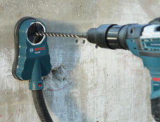 The best example of extraction has come with the use of epoxy anchors for bolts and rods. To properly work, the hole needs to be dust free before injecting the epoxy—but getting a dusty hole clean is really difficult and often dusty itself if you use compressed air. Long hollow shaft drills that have a vacuum draw through the bit just above the cutting head and a vac hose connection just before the SDS chuck connection, reduce friction (by taking away the dust), reduce bit heat by the air flow and leave no dust at all behind. Bits last longer and epoxy can be injected immediately.