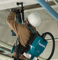 With the cordless revolution, people also want to eliminate that hose, so small battery-operated vacuum and shroud attachments are being made to attach directly to the tools, particularly SDS (slotted drive system) hammer drills. Most of these are specific to one brand; some are universally applicable. Unfortunately, the totally compact solution is getting heavier and heavier with two motors and two batteries plus a dust compartment.