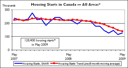 The CMHC is expecting starts to improve throughout 2009 and beyond, eventually falling in line with demographic demand which it pegs at around 175,000 units per year.
