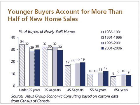 The August Altus Group Report examined census data from 2001 to 2006. The Altus Group found that new home construction continued to be dominated by first-time home buyers. Fully 60 per cent of new homes were purchased through this segment.