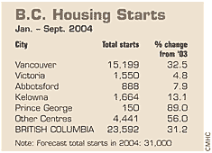 B.C. will have Canada's highest increase in housing starts during 2004. CMHC