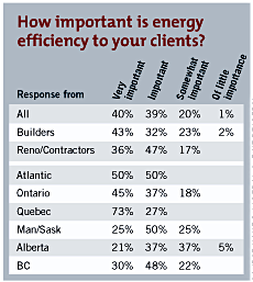 Only 33 per cent of builders and 43 per cent of renovators said energy efficiency