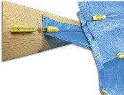 A new family of products makes managing tarps easy - without the need for grommets. Three sizes (1.5, 6 and 20 inches long) of Grabbits(tm) allow tarps - or other pliable fabrics - to be mounted to structures, seamed together, or grabbed, in just seconds. Using "linear grappling", the two-piece Grabbits involve a "dogbone" placed where the tarp goes and a sleeve that slides over the dogbone and tarp, holding the two pieces tightly together.