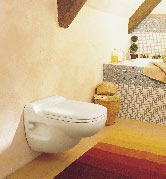 The Sanistar Macerating Toilet System not only saves water - it uses just 1.1 gallons per flush instead of the standard 1.6 gpf - but it also takes up very little space. Measuring 18 by 20-1/2 inches, the wall-hung unit (which can be positioned at the optimum height for the user) has no external tank. A macerating pump and electronically activated flushing mechanism are combined into a single package housed inside the fixture.