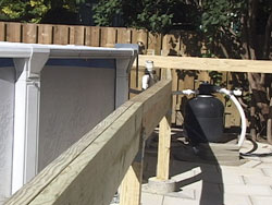 Sometimes we work just too hard trying to get deck posts all in a perfectly straight line despite rocks or other obstructions. Whether you are going around a swimming pool or around a rock, the reality is that beams that do not show on the outer edge of the deck have no need to be perfectly straight— in fact they can wander all over. The only requirement is that their top surface is perfectly flat and horizontal. Having a joist span a couple of inches more or less really makes very little difference to the structural integrity of the deck.