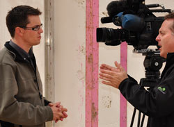 | Les Wold (left), managing partner of Effect Home Builders, discusses Belgravia Green with local media. |