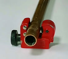 You probably all have this painful mini-cutter in your tool box. It is hard to turn the knob, and you go around and around to get the cut. Change it for the new round automatic cutters. Snap these over the pipe, make two revolutions and you are done—no odd-shaped knob to get stuck on the wall.