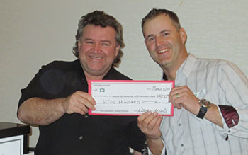 | CHBA-CVI President Christopher Cross presents $500 cheque to Jessie Chalmers, Build Chair for Habitat Humanity Mid-Vancouver Island. The funds were raised as part of the Love Your Home promotion at the North Nanaimo Town Centre. |