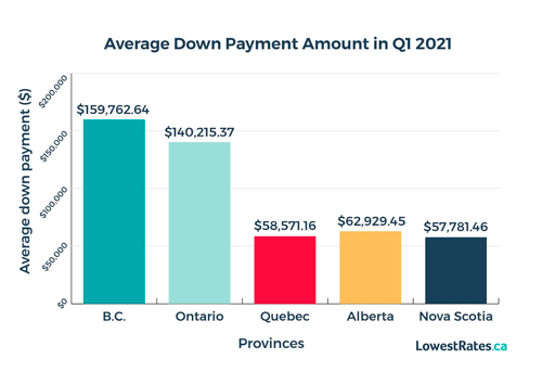 Homebuyers in Nova Scotia and Quebec are paying the lowest down payments in the country—both about $100,000 less than in British Columbia, the province with the highest down payments, according to a new survey from LowestRates.ca.